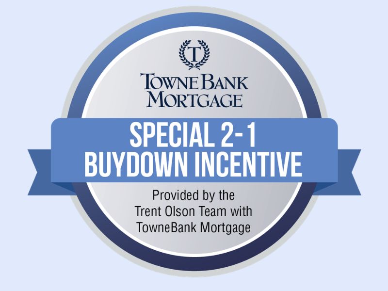 *2-1 Buydown Incentive available upon settlement with the Trent Olson Team with TowneBank Mortgage. This is being provided for informational purposes only and is not a commitment. Greystone Homes and Coldwell Banker are not mortgage lenders and so you should contact TowneBank Mortgage directly to learn more about its mortgage products and your eligibility for such products. Rates and program are subject to change due to unforeseen market conditions, borrowers credit profile and eligibility requirements. All payments, monthly principal, interest, taxes, and insurance are based on 360 monthly payments. APR stands for Annual Percentage Rate. Total obligation could be higher. This is not a commitment to lend.